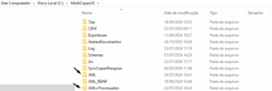 Pastas XML e XMLs Processados: