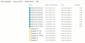 Na pasta XML, devem ser inseridos todos os arquivos a serem importados, podendo estar organizados em pastas ou soltos.