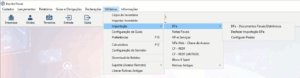 No menu ‘Utilitários > Importação’, foi inserida novas opções ‘DFe > DFe – Documentos Fiscais Eletrônicos, Desfazer Importação DFe e Configurar Pastas’.