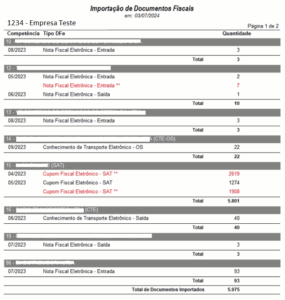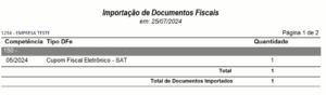 No final da importação, é gerado um relatório para fins de conferência, onde será possível identificar de qual empresa, competência, tipo de documento e quantidade de arquivos que foram importados.